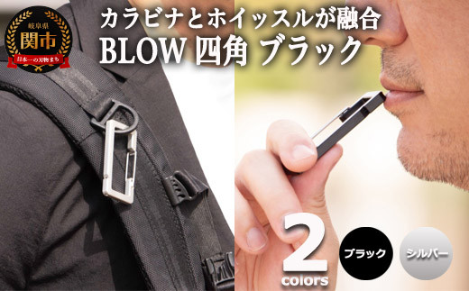 普段使いしやすい2way仕様! カラビナホイッスル ”BLOW” 四角形 ブラック 防災 防犯 笛
