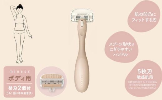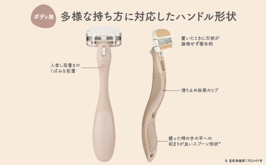 どんな人にも、どんな部位でも手にフィットしやすいハンドル形状。肌に優しい刃体。