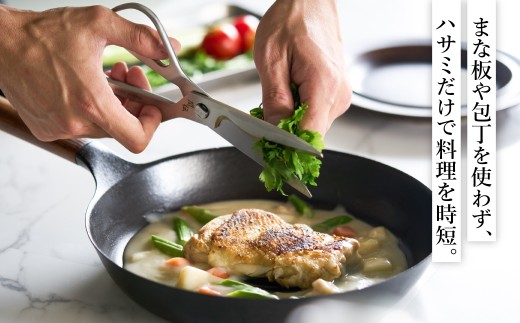 刃物の町で培われた技術力を注ぎ込んだオールステンレスキッチンハサミ。