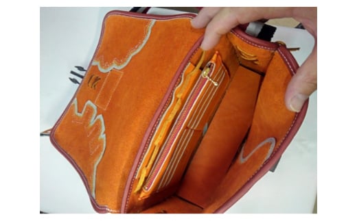 カラー:オレンジ×ブラウン(ヘリ皮)/ステッチ(縫い糸)レッド