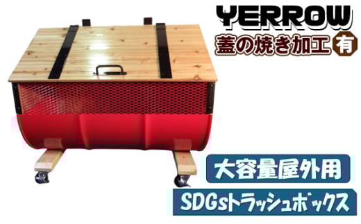 No.277-05 【大容量屋外用】SDGsトラッシュボックス YERROW (蓋の焼き加工有り) / ドラム缶 木 大型 大阪府
