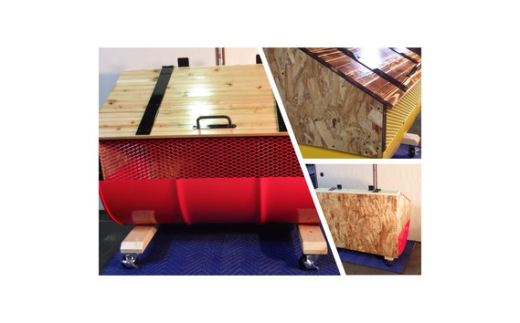 使用済みのドラム缶と木材(ハウスメーカーから頂戴した端材使用の場合有)を使用したSDGsな大型トラッシュボックス(鉄のやや武骨な感じと木の温もりの合わさった商品)です。