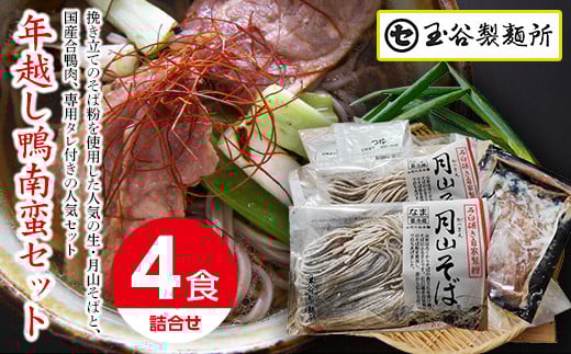 FYN9-411 ≪2025年先行予約 年内発送≫山形県 西川町 年越し 鴨南蛮そばセット(4食) つゆ付き 2025年12月26日頃から順次発送 年越し そば 蕎麦 めん 麺 セット たれ付 具材付 国内製造 年末 年内 配送 発送 山形県 西川町 月山