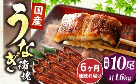 【全6回定期便】福岡県産 うなぎ 蒲焼 大 10尾 計1,600g(1尾あたり 160g以上)《豊前市》【福岡養鰻】 国産 鰻 ウナギ 蒲焼き [VAD028]