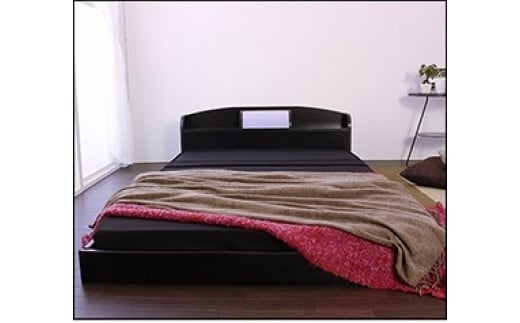 【組立サービス付】190 ダブルサイズ 棚照明付フロアベッド 国産ポケットコイルマットレス(108618)付(ブラック)(1438)