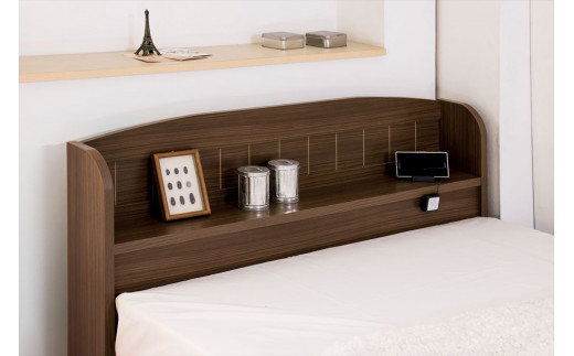 【組立サービス付】A322 セミダブルサイズ 棚コンセント引き出し付きカントリー調ベッド 国産ポケットコイルマットレス(108618)付(ウォルナット)(1581)