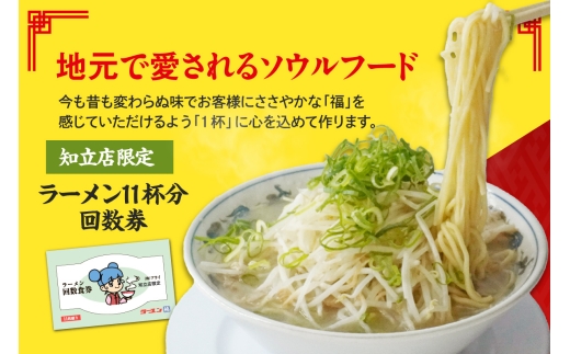 もやしやネギは増量可能!ラーメン福の人気のラーメン11杯分の回数券です
