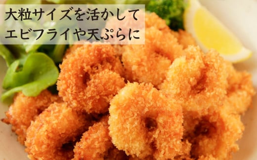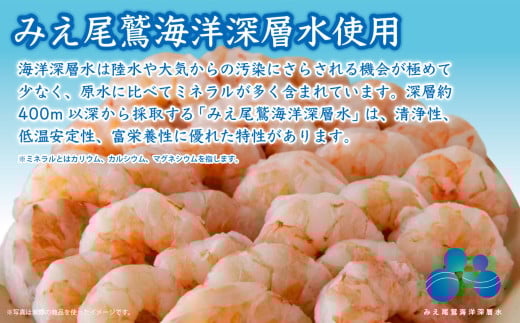 海洋深層水使用。バラ凍結。頭、背ワタなど下処理済の大粒むきえび