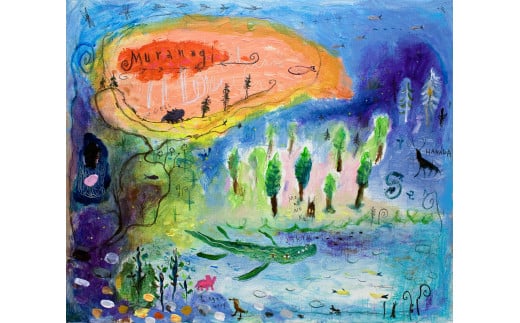 ムラナギ 絵画作品 No.1022『僕らの好きな場所』 一点物 アクリル原画 幻想世界 アート作品 F8キャンバス仕様 壁掛け 棚置き 可能 絵 作品 アート 芸術品 コレクション 原画 飾り インテリア 茨城県 石岡市 (F10-002)