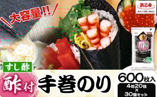 のり 海苔 酢付 手巻きのり ( 4切20枚 × 30個 ) 海苔 600枚 浜乙女《30日以内に発送予定(土日祝除く)》三重県 東員町 国産 手巻き寿司 大容量