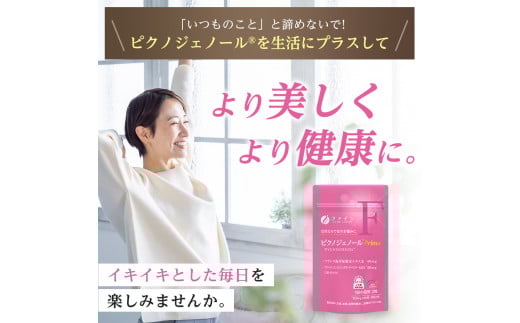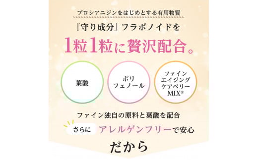 本品は、"ピクノジェノール🄬"をはじめ、自社独自原料"ファインエイジングケアベリーMIX🄬"や葉酸を配合した栄養補助食品です。