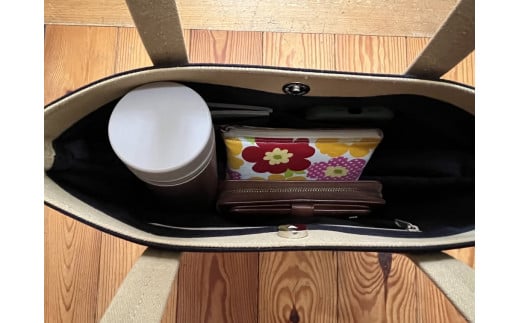 長財布、水筒、お弁当等がすっぽり収まり、通勤、通学、お出かけに持ちやすいサイズ