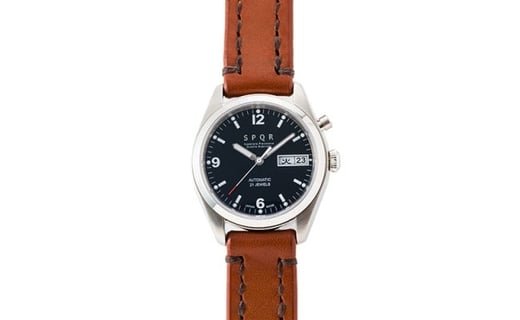 2時ボタンがスタイリッシュなSPQRの機械式ウォッチ定番デザインに国産ムーブ自動巻デイデイトとSOMESブライドルレザーバンドを搭載。