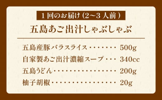 【3回定期便】五島あご出汁しゃぶしゃぶ2-3人前 (五島産豚バラ/あご出汁/〆のうどん/柚子胡椒) 五島市/NEWパンドラ[PAD007] 鍋 なべ お鍋 おなべ 豚 豚肉