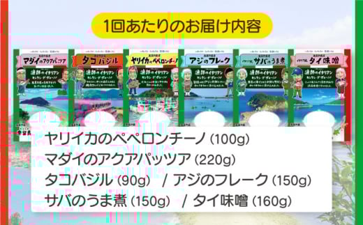 【6回定期便】漁師のイタリアン6種 五島市/奈留町漁業協同組合[PAT013] 惣菜 セット 魚 おかず 常温保存 レトルト ペペロンチーノ レトルト食品 人気 常温 定期便セット