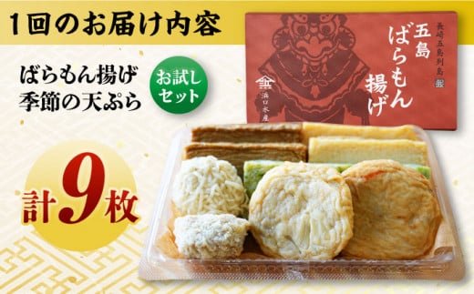 【6回定期便】ばらもん揚げのお試しセット 計9枚 五島市 / 浜口水産[PAI032]かまぼこ ギフト 熨斗 のし 練り物 天ぷら 詰め合わせ セット おつまみ お正月 正月詰合せ かまぼこ