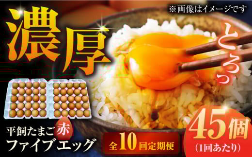 【10回定期便】【箱入り】平飼たまご ファイブエッグ M~Lサイズ 45個 / 5EGG 卵 赤玉子 五島市 / 五島列島大石養鶏場 [PFQ044] 玉子 タマゴ 鶏卵 希少 五島列島