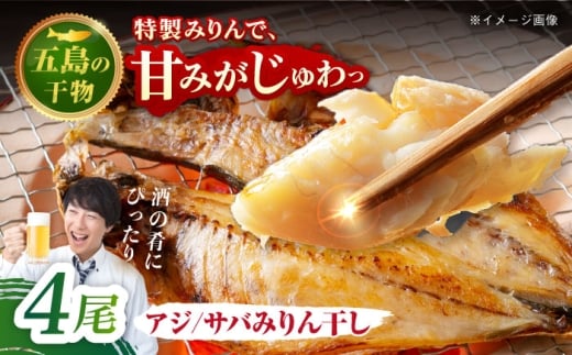 【S】一夜干し みりん干し(アジ/サバ)計4尾 五島市/愛情食彩[PCH013]