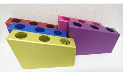 アルミ材で加工した、軽くてカラフルな一輪挿しです。(ガラス:試験管付き)