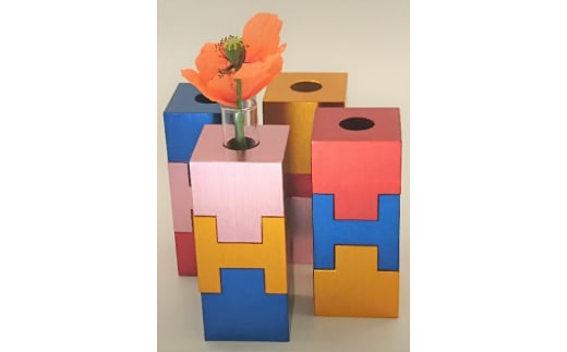 アルミ材で加工した、軽くてカラフルな一輪挿し:臍タイプです。