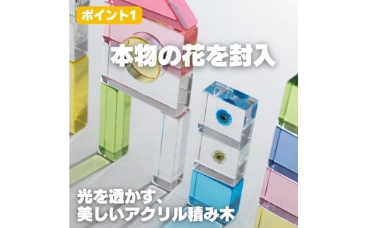 お花を閉じ込めたアクリル積み木 36ピース ブルー HIKARINOTOY インテリア 知育 玩具 プレゼント お祝い