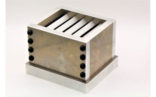 アルミ材で加工した、賽銭箱タイプの貯金箱です。