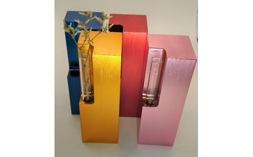 アルミ材で加工した、軽くてカラフルな一輪挿しセットです。