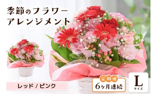 定期便 ≪6ヶ月連続お届け≫ 選べるカラー 季節のフラワーアレンジメント L (レッド・ピンク) 【お花 フラワー アレジメント 花束 ギフト 生花 プレゼント 花束 花 記念日 敬老の日 お祝い】 [J-20701_01]