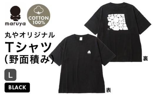丸や オリジナルTシャツ (野面積み) ブラック【Lサイズ】 【ティーシャツ コットン 綿100% 男女兼用 雑貨 普段使い 半袖】 [A-80134_07]