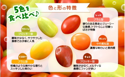 カラフルミニトマト5色アソート (赤、オレンジ、イエロー、グリーン、チョコ) 1kgギフト箱入