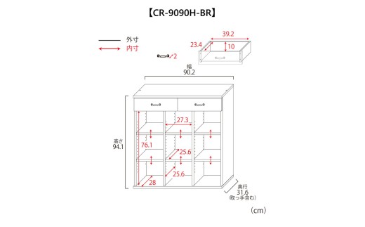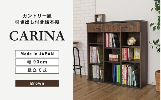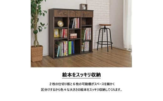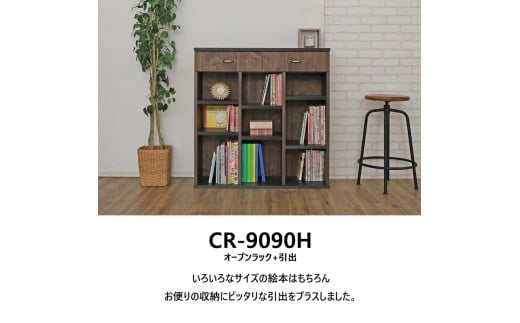 幅90cm カントリー風引出付き絵本棚 CR-9090H ブラウン 日本製 ≪寄付者様組み立て品≫ 【絵本ラック 絵本棚 書棚 オープン書棚 絵本 棚 稼働棚 移動棚 子供部屋 ラック オープン 木製 リビング収納 新生活 国産】 [H-18810_02]