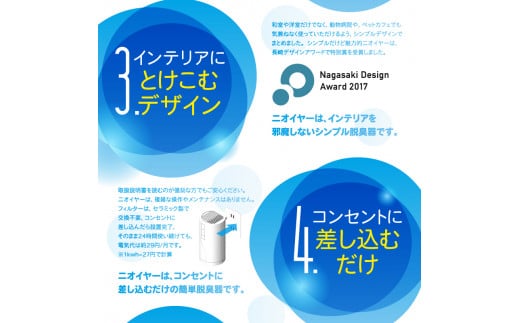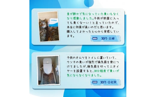 脱臭器ニオイヤー(横約64㎜*奥行約60㎜*高さ約122㎜*重量約170g)