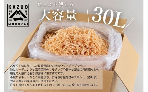 G307a 【天然素材100%】長崎ひのきでつくったウッドチップ大容量(30L)【古場一男材木店】合成添加物不使用 檜 ヒノキ 香り 大容量 リラックス おすすめ 人気 マルチング 新生活 一人暮らし 国産