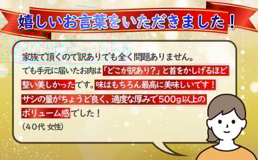 品質には問題ないが、厳密な規格から外れた大きい牛または小さい牛からとれた和牛のため。