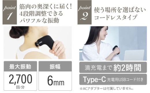 マッサージガン ボディシェイプガンミオブラック/MCB030K[AOAB087] ママッサージ ハンディガン マッサージャー マッサージ器 マッサージ機 美容家電 健康 運動 美容 ダイエット リラックス 疲労回復 指圧 ツボ 血行促進 肩こり 首こり 腰 全身 背中 コンパクト ミニ 小型 軽量 持ち運び 静音 静か コードレス 充電 人気 おすすめ 女性 ギフト プレゼント アルインコ