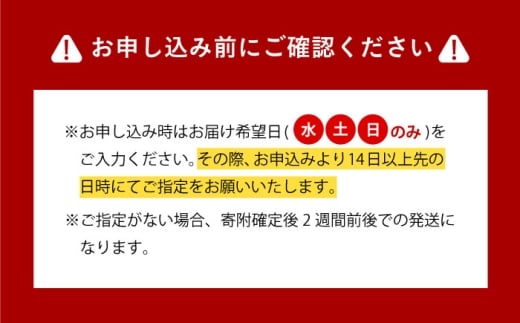 ※お申し込み時はお届け希望日(水・土・日のみ)をご入力ください。その際、お申込みより14日以上先の日時にてご指定をお願いいたします。