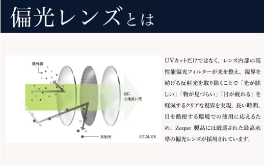 明るくクリアで眩しくない、高品質な日本製偏光レンズ
