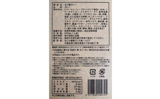 トマト・ピューレーづけ(イタリア製造)、牛肉、ソテードオニオン、ミルポワペースト、食用油脂(牛脂)、小麦粉、ビーフエキス、カレー粉、砂糖、食塩、たん白加水分解物、オニオンパウダー、クミン、ガーリックパウダー、ガラムマサラ、酵母エキス、コリアンダー、和牛エキス、黒砂糖、赤唐辛子、醤油パウダー、トマトパウダー、野菜エキスパウダー、チキンエキス/カラメル色素(一部に小麦・牛肉・豚肉・鶏肉・大豆を含む)※本品製造工場では、乳成分・卵・えび・かに・落花生を含む製品を生産しております。