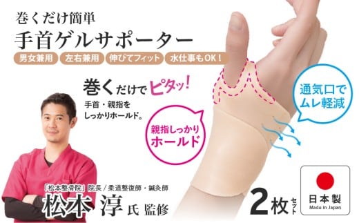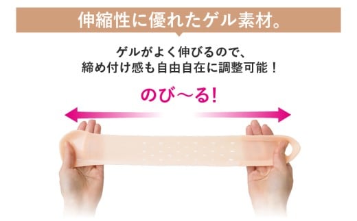 巻くだけでピタッ!手首をしっかりホールド。薄手のゲル素材で長時間つけても快適。