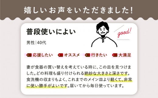 ・素敵でシンプルなデザインに惹かれました。さらに、大きいお皿になるとそれなりの重さになり、洗ったり重ねて片付けたりがプチストレス(笑)それも含めてお料理がさらに楽しくなるのを期待しています。