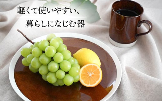 【美濃焼】[軽量食器] TLPリムバンド ブラウン マグ×2個 10インチプレート×2枚 ペアセット【井澤コーポレーション】 [TBP121]