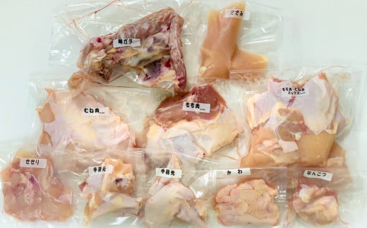 もも、むね、ささみ、手羽先、手羽元、せせり、軟骨、皮、ガラ・・計 1.6kg以上