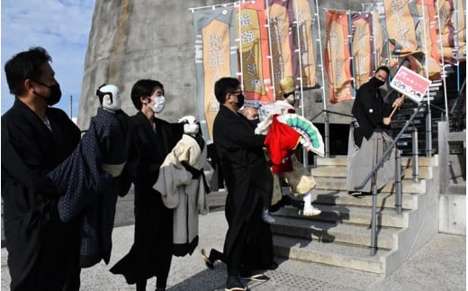 淡路人形座 1日座長体験チケット-座長弁当 えべっさんのお福わけ(おせんべい)付き-