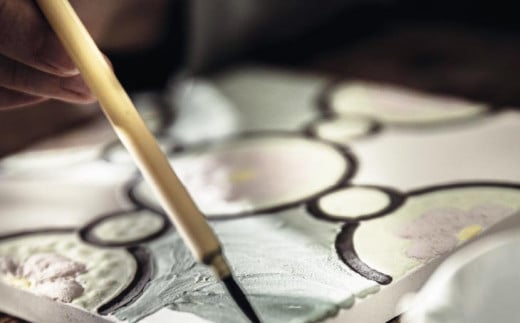 色鮮やかな釉薬で、一枚一枚丁寧に手作業で色付けしています。