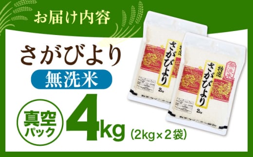 【1月発送】<真空パック> さがびより 無洗米 4kg ( 2kg × 2袋 )【五つ星お米マイスター厳選】 [HBL012]