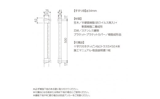住宅向け手すりソフトハンドP-34V/I-50/#10プレーンホワイト