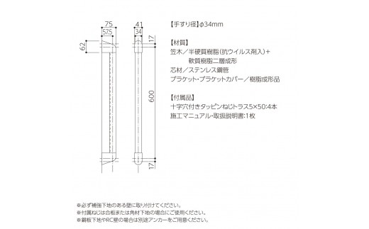 住宅向け手すりソフトハンドP-34V/I-60/#04ソフトブラック