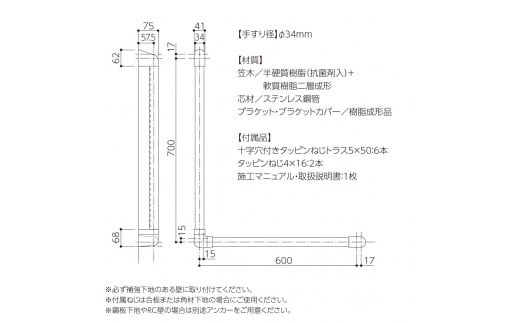 住宅向け手すりソフトハンドP-34V/L-7060/#00ホワイト
