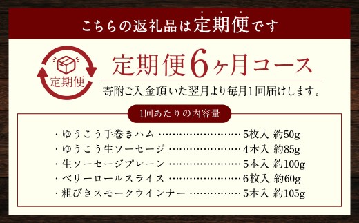 【全6回定期便】長崎伝統柑橘【ゆうこう】食べ比べセット / ゆうこう手巻きハム ゆうこう生ソーセージ 生ソーセージプレーン ベリーロールスライス 粗びきスモークウインナー 長崎県 長崎市