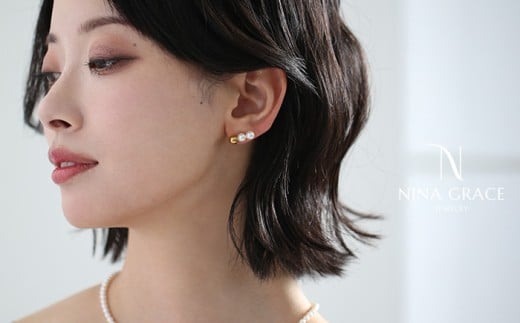 あこや真珠の柔らかな輝きと存在感あるゴールドの煌めきの3連ゴールドピアス。